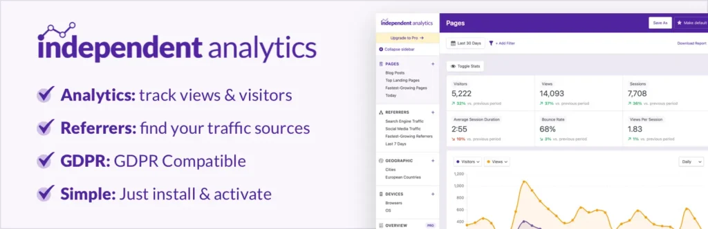 دوای ئەوەی ماڵپەڕەکەت دروست دەکەیت، بۆ بینینی ئامار، شیکردنەوەکان و چاودێریی هاتوچۆ، پێویستت بە پێوەکراوێکی بەهێز دەبێت. باشترین پێوەکراو بۆ ئەم مەبەستە (Independent Analytics)ـە. یەکێکە لە جێگرەوە باشەکانی (Google Analytics) و تەواو گونجاوە لەگەڵ ڕێسای گشتیی پاراستنی دراوە (GDPR).